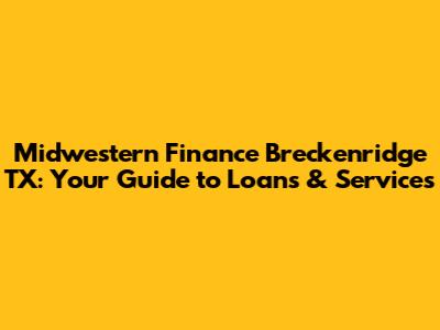 Hey guys! Are you looking for financial assistance in Breckenridge, Texas? You've probably stumbled upon Midwestern Finance, and you're likely wondering what they offer and how they can help. Well, you've come to the right place! This article dives deep into Midwestern Finance in Breckenridge, TX, exploring their loan options, services, and everything else you need to know to make an informed decision. Let's get started!