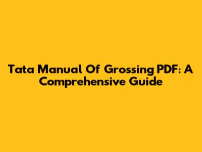 Tata Manual Of Grossing PDF: A Comprehensive Guide