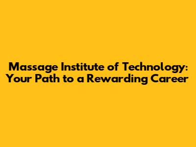 - Q: Is financial aid available? A: Yes, the Massage Institute of Technology often offers financial aid options. This includes federal student loans and scholarships. Check with the school's financial aid office for more information.