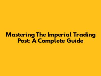 Mastering The Imperial Trading Post: A Complete Guide