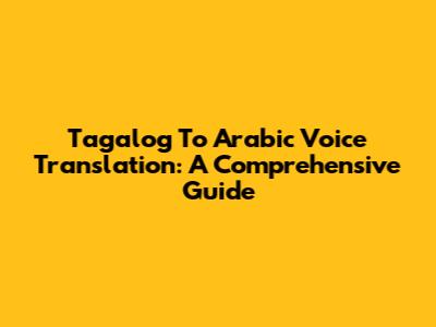 Tagalog To Arabic Voice Translation: A Comprehensive Guide