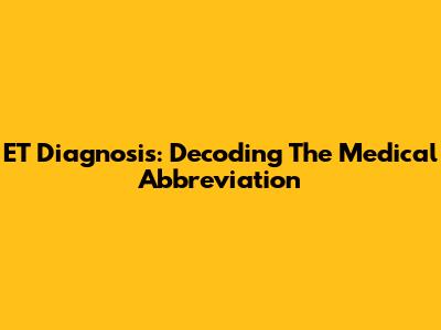 ET Diagnosis: Decoding The Medical Abbreviation