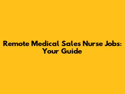 Remote Medical Sales Nurse Jobs: Your Guide