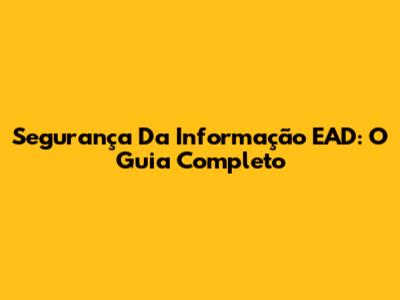 Segurança Da Informação EAD: O Guia Completo