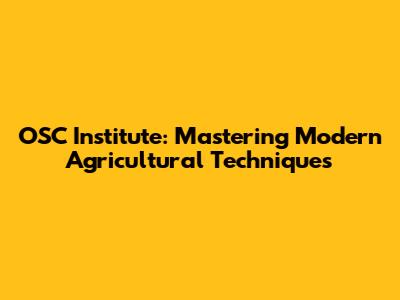 OSC Institute: Mastering Modern Agricultural Techniques