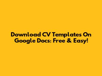 Download CV Templates On Google Docs: Free & Easy!
