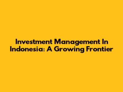 Investment Management In Indonesia: A Growing Frontier
