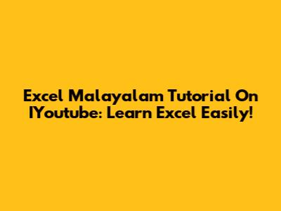 Excel Malayalam Tutorial On IYoutube: Learn Excel Easily!