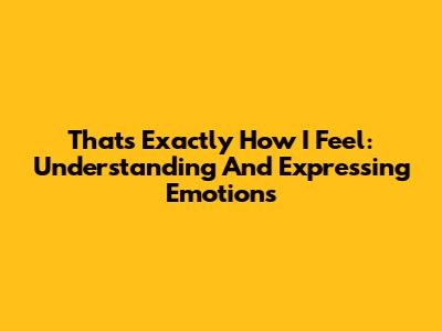 That's Exactly How I Feel: Understanding And Expressing Emotions