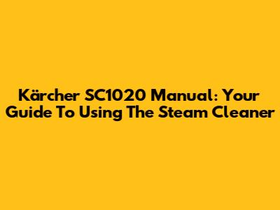 Kärcher SC1020 Manual: Your Guide To Using The Steam Cleaner