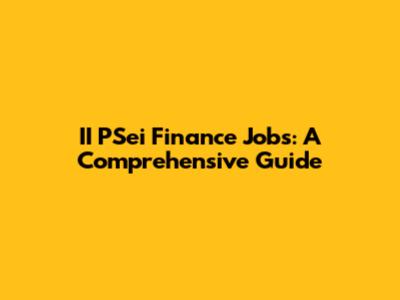 II PSei Finance Jobs: A Comprehensive Guide