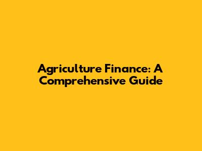 Agriculture Finance: A Comprehensive Guide