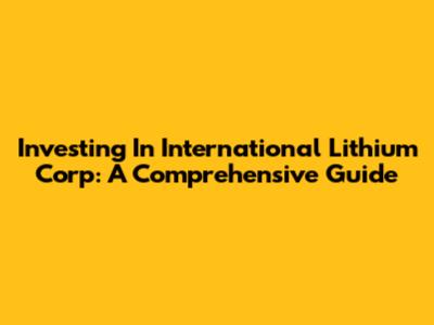 Investing In International Lithium Corp: A Comprehensive Guide