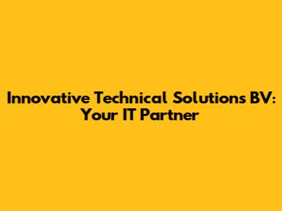 Innovative Technical Solutions BV: Your IT Partner