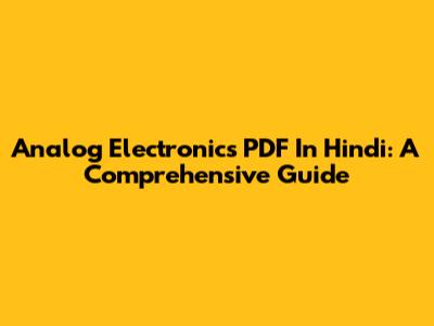Analog Electronics PDF In Hindi: A Comprehensive Guide
