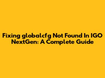 Fixing 'globalcfg Not Found' In IGO NextGen: A Complete Guide
