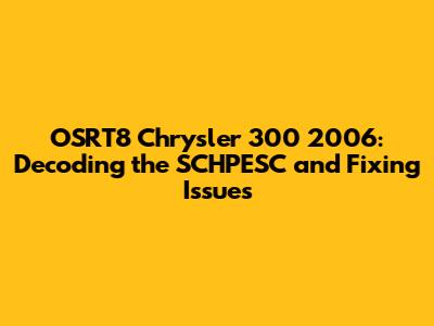 Hey car enthusiasts! Ever found yourself staring at your 2006 Chrysler 300, scratching your head over an OSRT8 code and the mysterious SCHPESC? Don't sweat it – you're in the right place! This guide is your friendly, easy-to-understand resource for tackling these issues head-on. We're going to break down what these terms mean, why they matter, and, most importantly, how to get your ride back in tip-top shape. Buckle up; it's going to be an exciting ride!