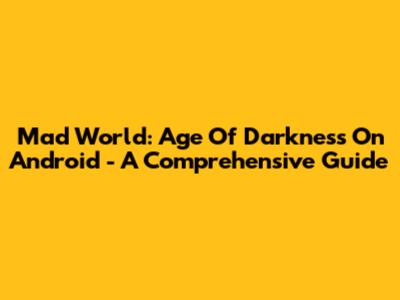 Mad World: Age Of Darkness On Android - A Comprehensive Guide