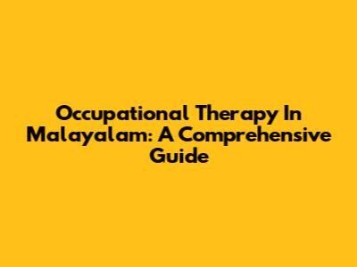 Occupational Therapy In Malayalam: A Comprehensive Guide
