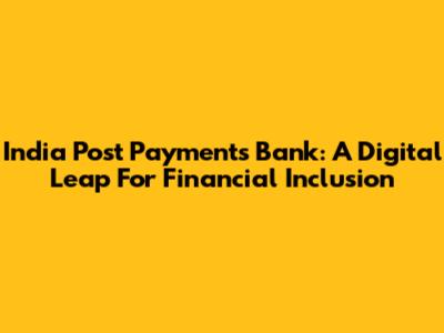 India Post Payments Bank: A Digital Leap For Financial Inclusion
