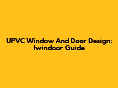 UPVC Window And Door Design: Iwindoor Guide