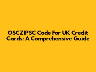 OSCZIPSC Code For UK Credit Cards: A Comprehensive Guide