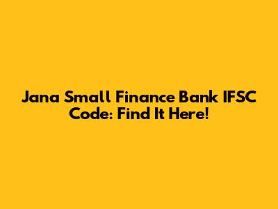 Jana Small Finance Bank IFSC Code: Find It Here!