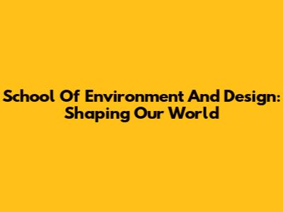 School Of Environment And Design: Shaping Our World