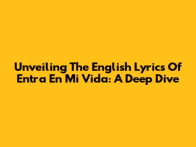 Unveiling The English Lyrics Of "Entra En Mi Vida": A Deep Dive