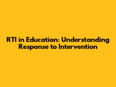 RTI In Education: Understanding Response To Intervention