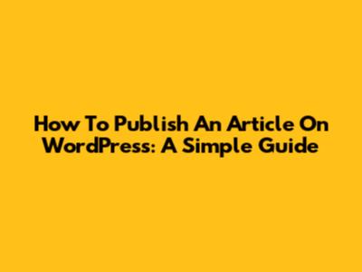 How To Publish An Article On WordPress: A Simple Guide