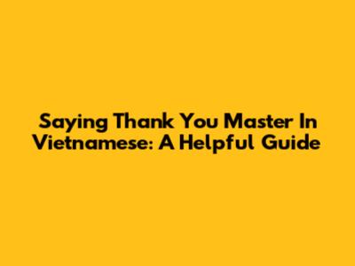 Saying 'Thank You Master' In Vietnamese: A Helpful Guide
