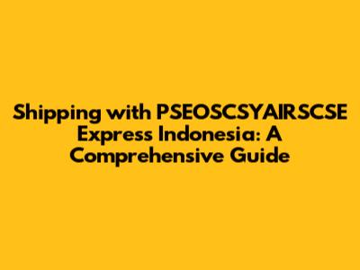 Optimizing Your Shipping Experience with PSEOSCSYAIRSCSE Express Indonesia
