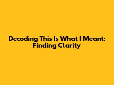 Decoding 'This Is What I Meant': Finding Clarity