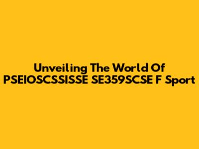 Unveiling The World Of PSEIOSCSSISSE SE359SCSE F Sport