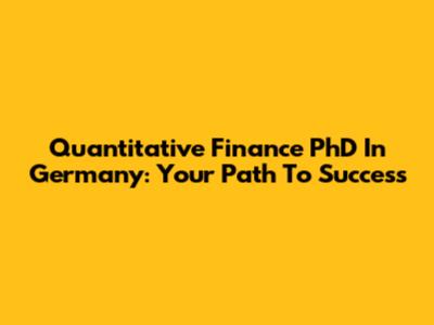 Quantitative Finance PhD In Germany: Your Path To Success