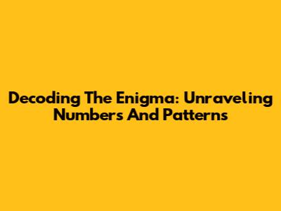 Decoding The Enigma: Unraveling Numbers And Patterns