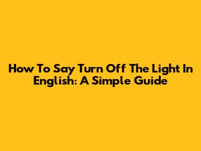 How To Say 'Turn Off The Light' In English: A Simple Guide