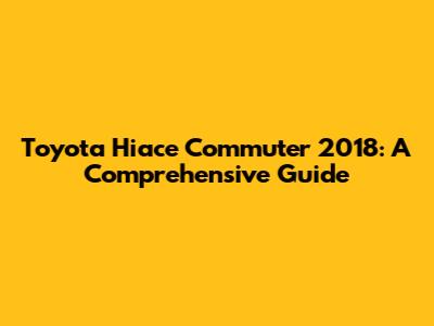 Toyota Hiace Commuter 2018: A Comprehensive Guide