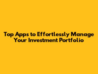 Top Apps To Effortlessly Manage Your Investment Portfolio