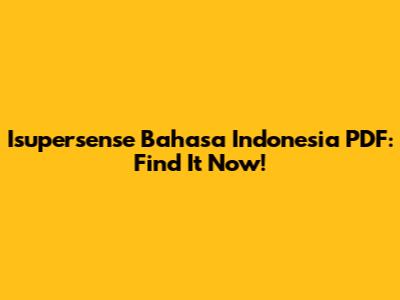Isupersense Bahasa Indonesia PDF: Find It Now!