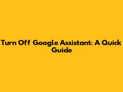 Turn Off Google Assistant: A Quick Guide
