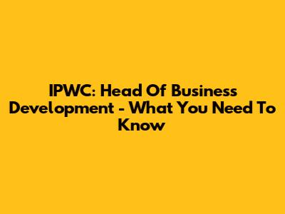 IPWC: Head Of Business Development - What You Need To Know