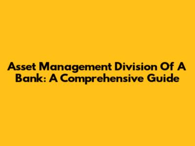 Asset Management Division Of A Bank: A Comprehensive Guide