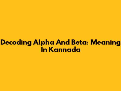 Decoding Alpha And Beta: Meaning In Kannada