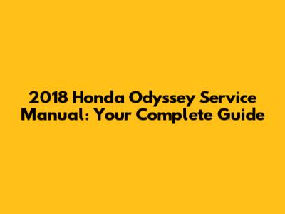 2018 Honda Odyssey Service Manual: Your Complete Guide
