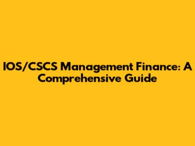 IOS/CSCS Management Finance: A Comprehensive Guide