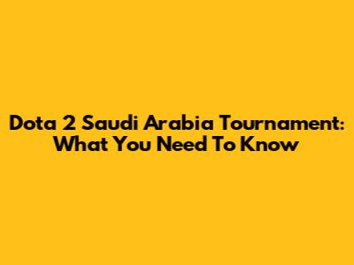 Dota 2 Saudi Arabia Tournament: What You Need To Know