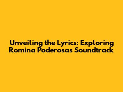 Hey everyone! Ever found yourself completely hooked on a TV show, not just for the story, but also for the incredible music? Well, that's definitely the case with Romina Poderosa! The soundtrack is seriously amazing, and if you're anything like me, you're probably dying to know the lyrics to all those catchy songs. So, let's dive into the world of Romina Poderosa's song lyrics and see what makes the music so special. We're going to break down some of the most popular tracks, explore the themes they touch on, and, of course, get a closer look at those words that get stuck in your head. Whether you're a die-hard fan or just curious about the show's music, this is your go-to guide for everything Romina Poderosa and its amazing soundtrack. Ready to sing along? Let's get started!