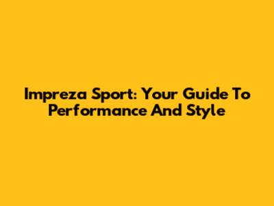 Impreza Sport: Your Guide To Performance And Style